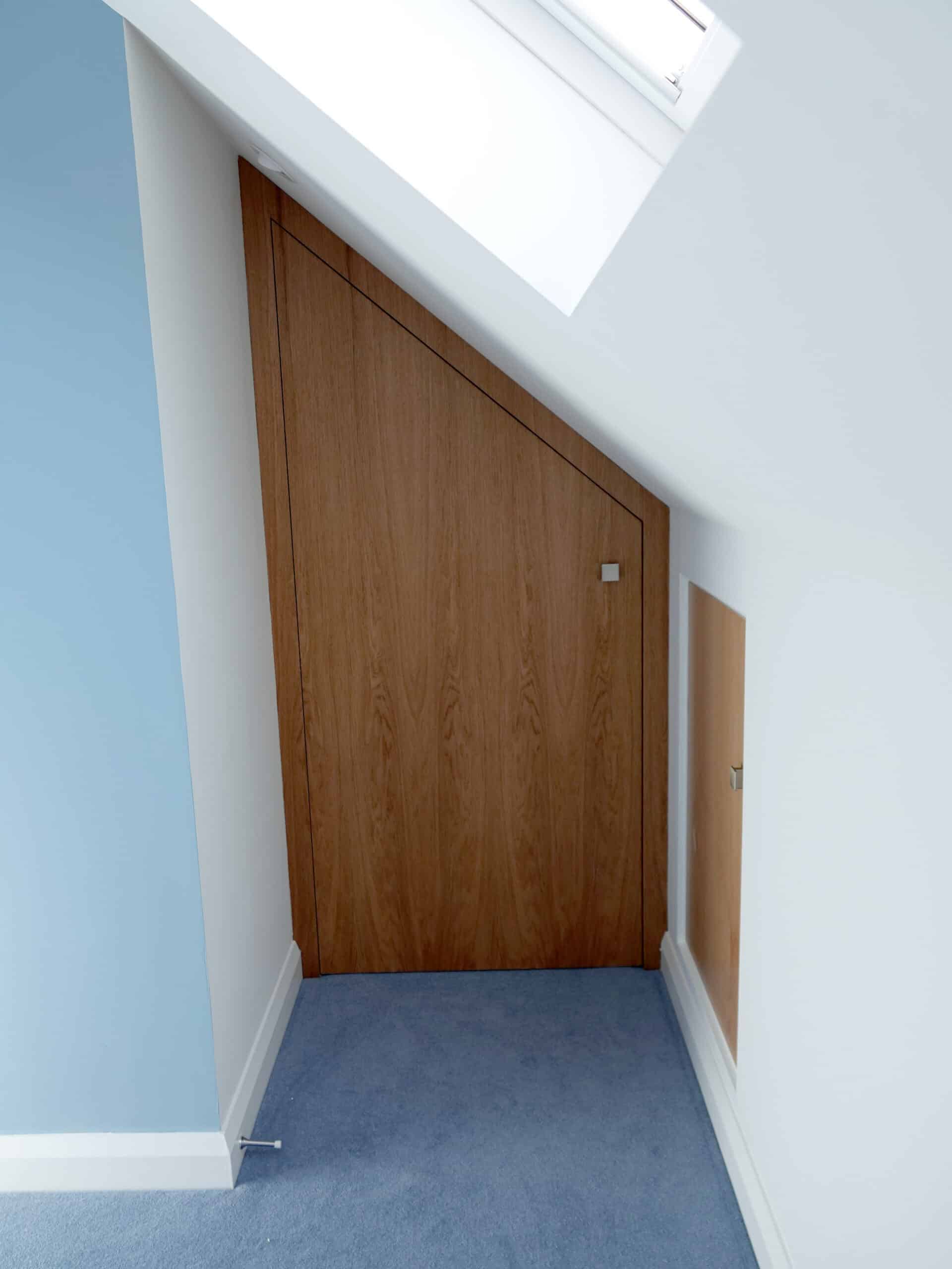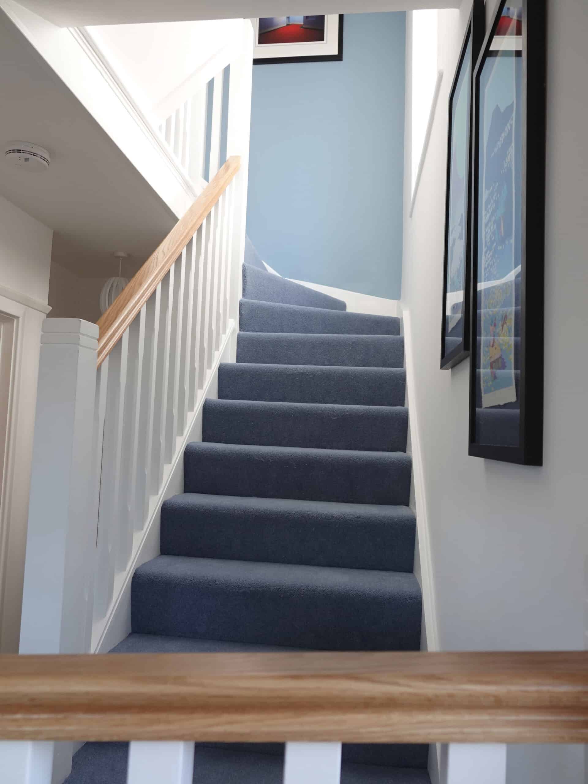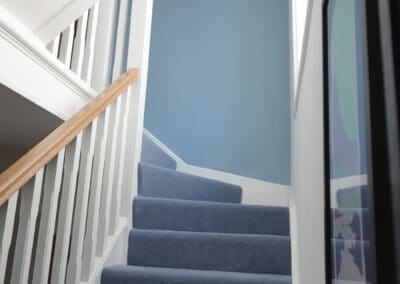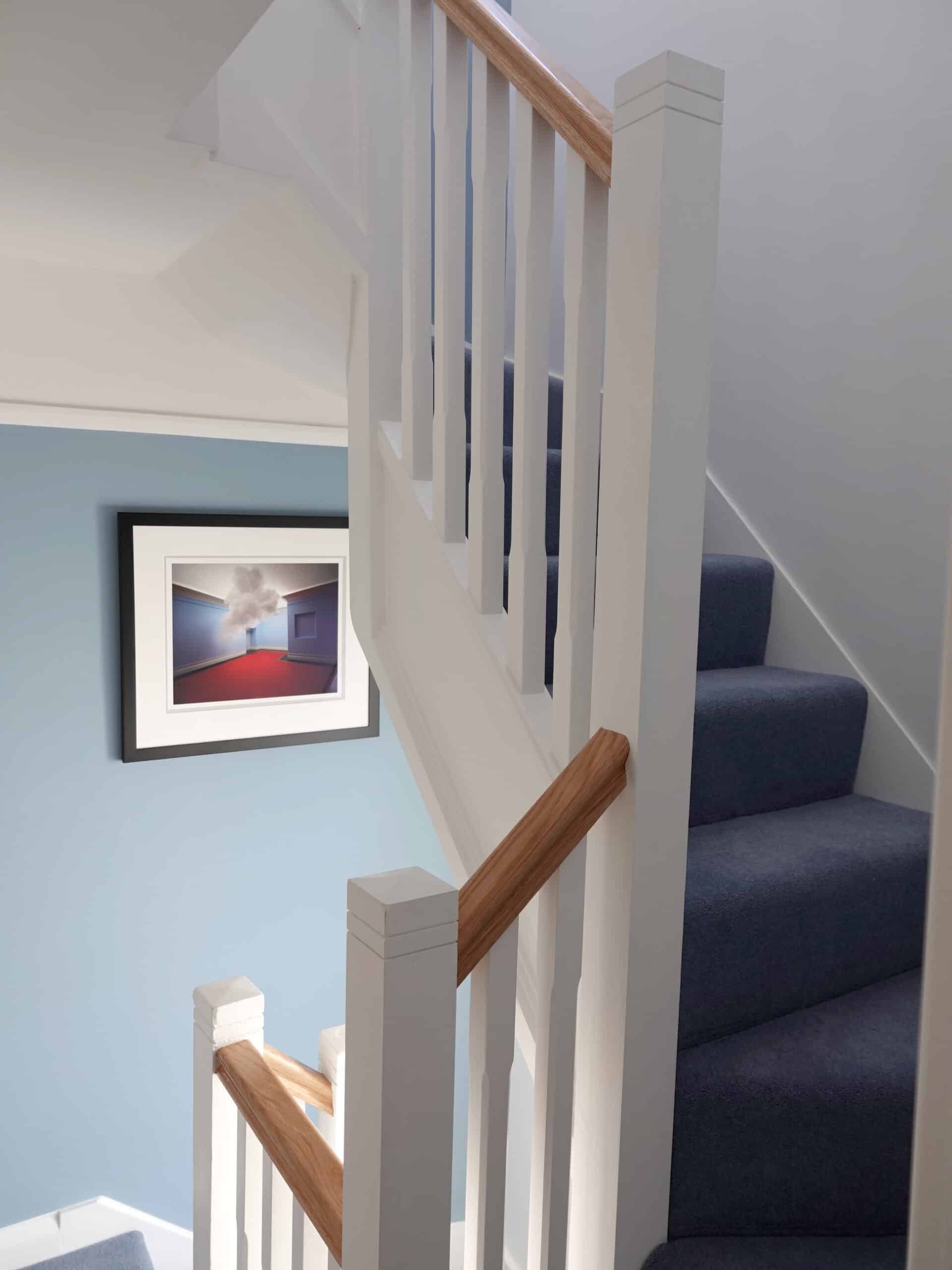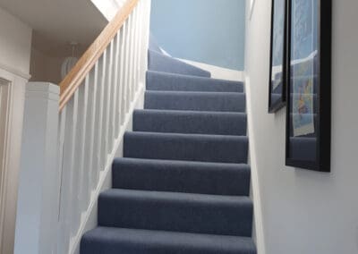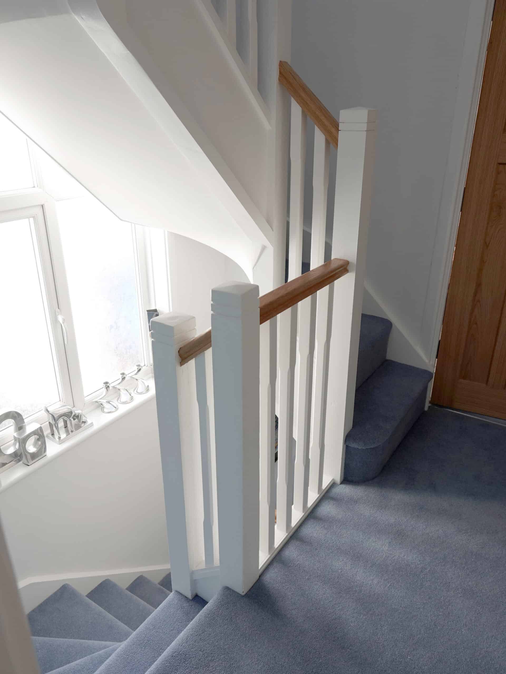 Loft conversion in Stoneleigh with an ensuite bathroom. With an almost nautical colour scheme and winding staircase this loft conversion is a great showcase.