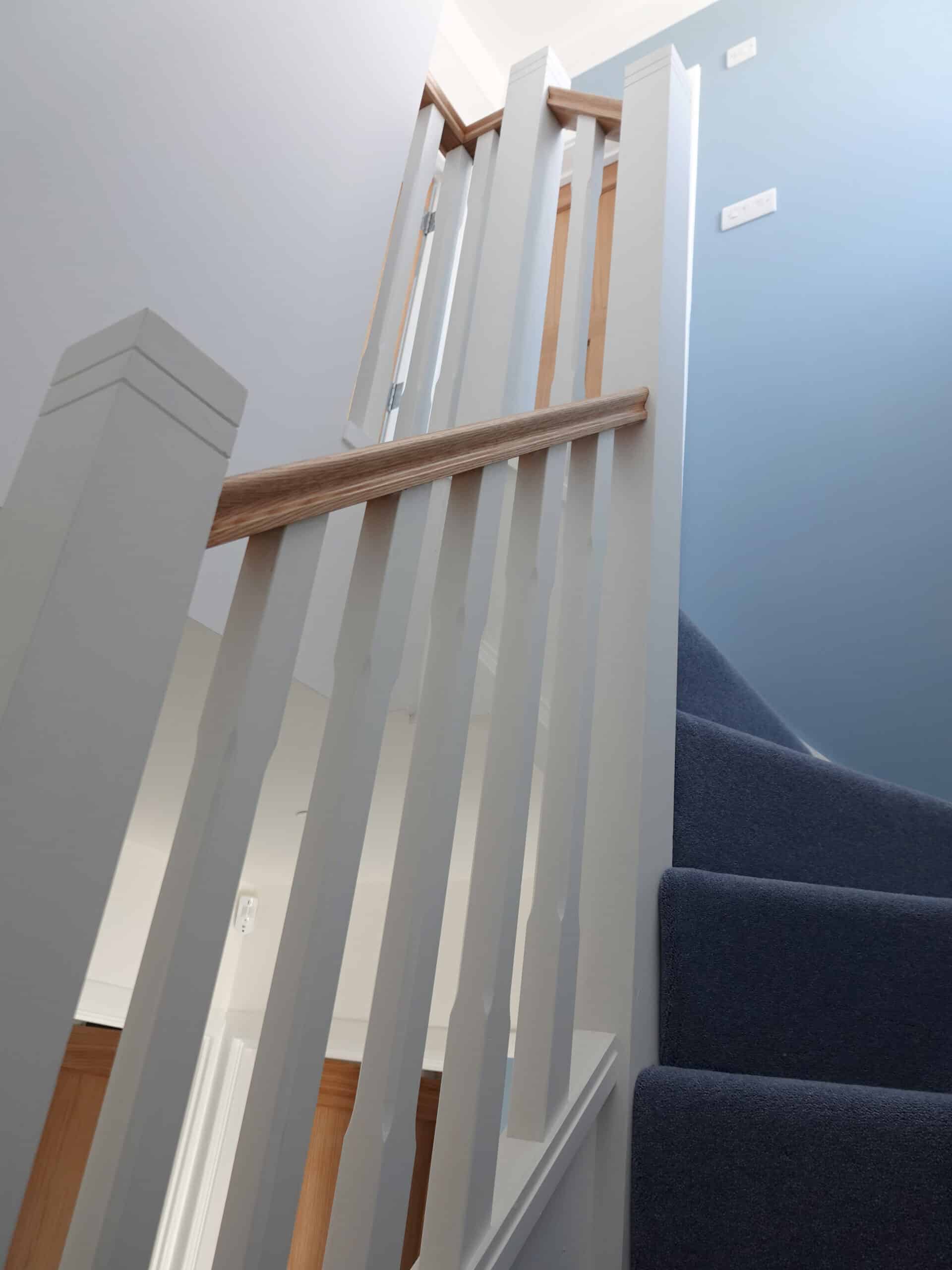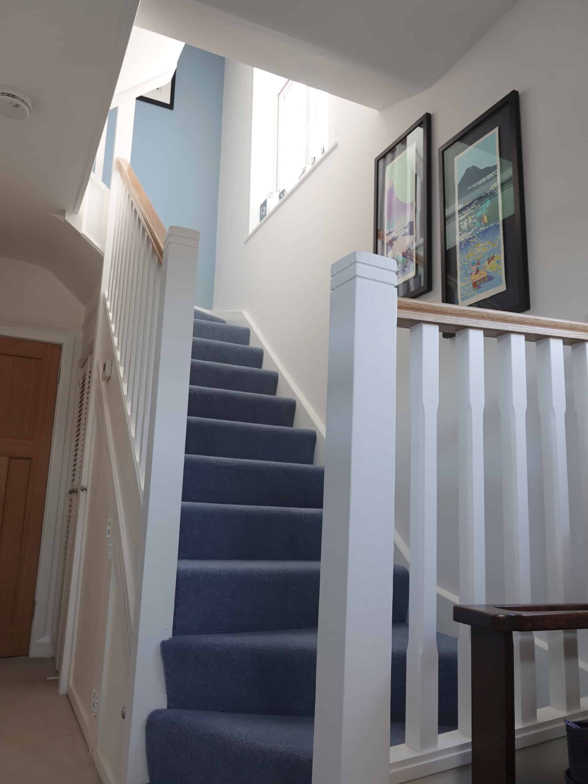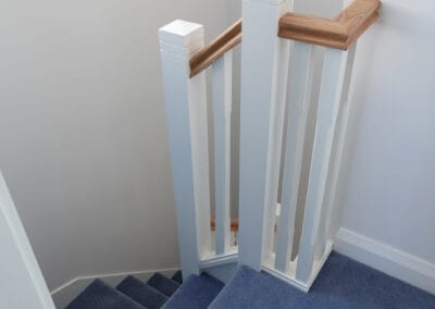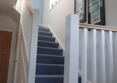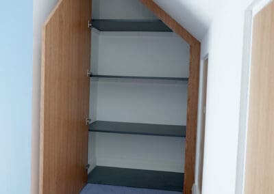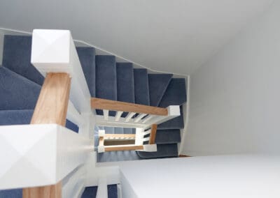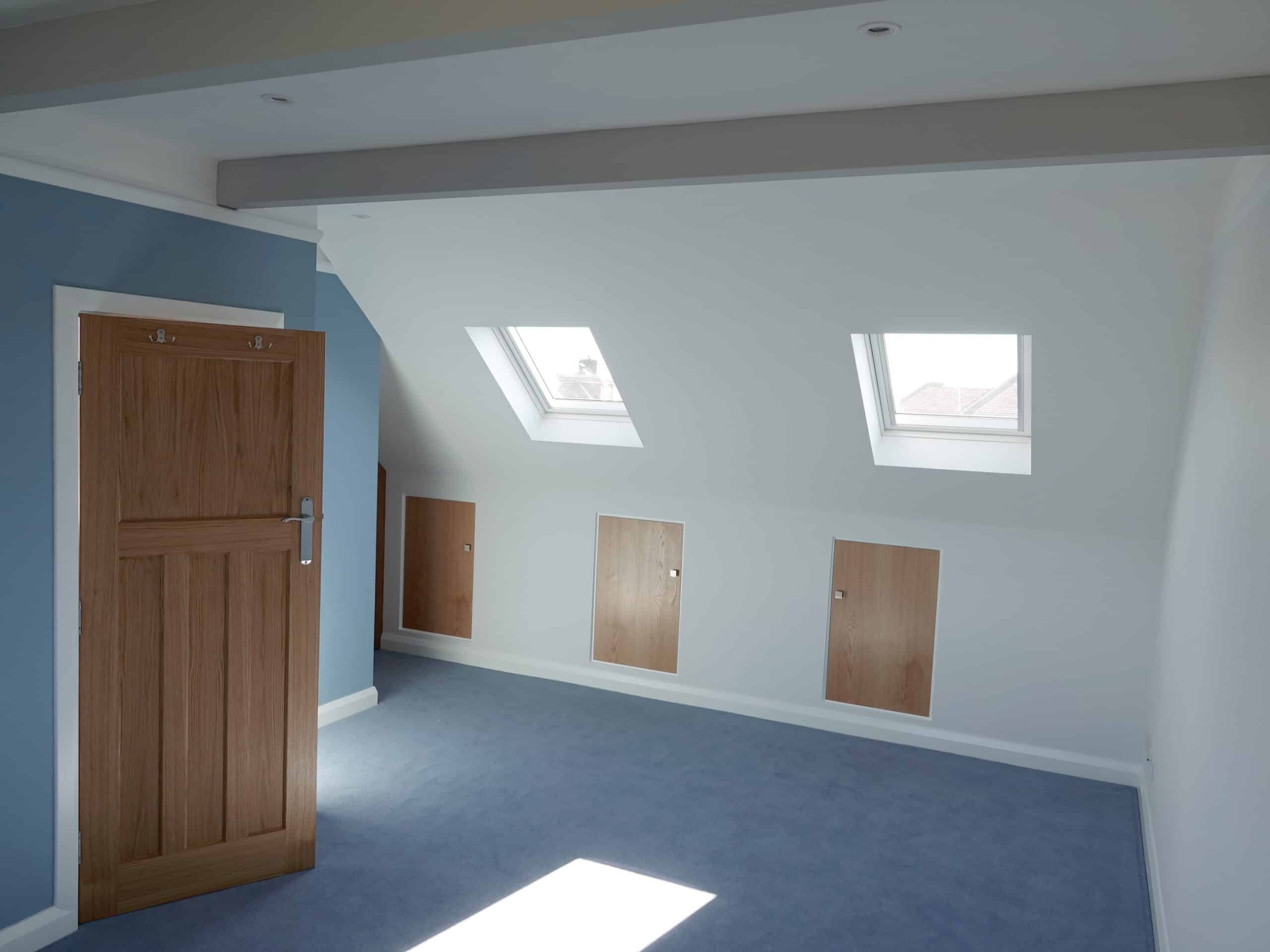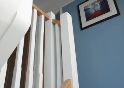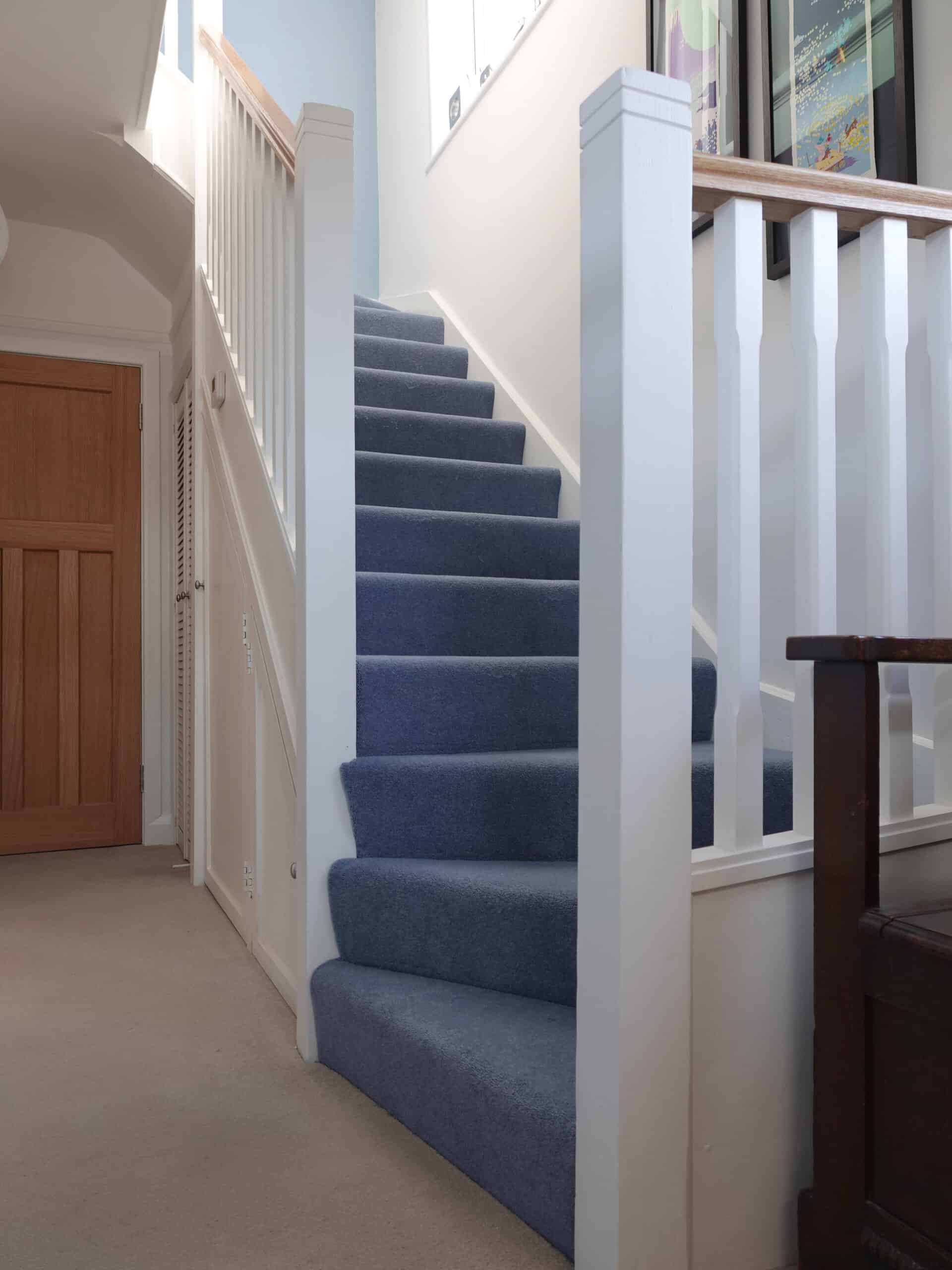 Loft conversion in Stoneleigh with an ensuite bathroom. With an almost nautical colour scheme and winding staircase this loft conversion is a great showcase.