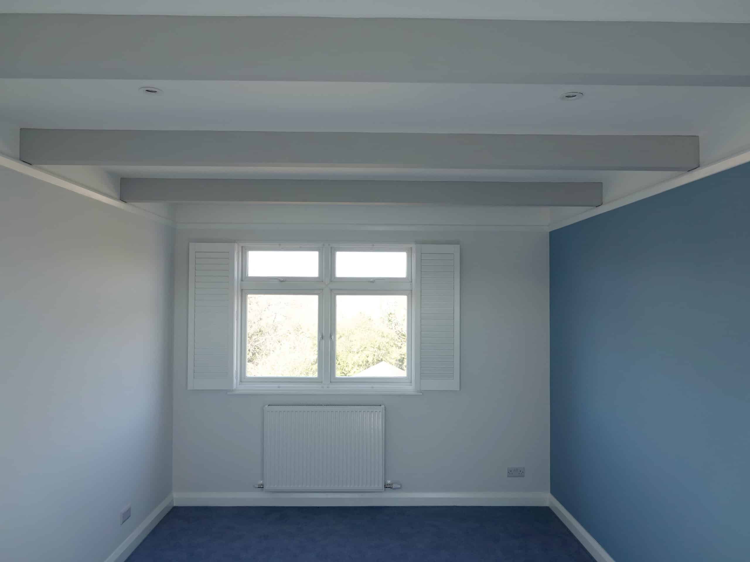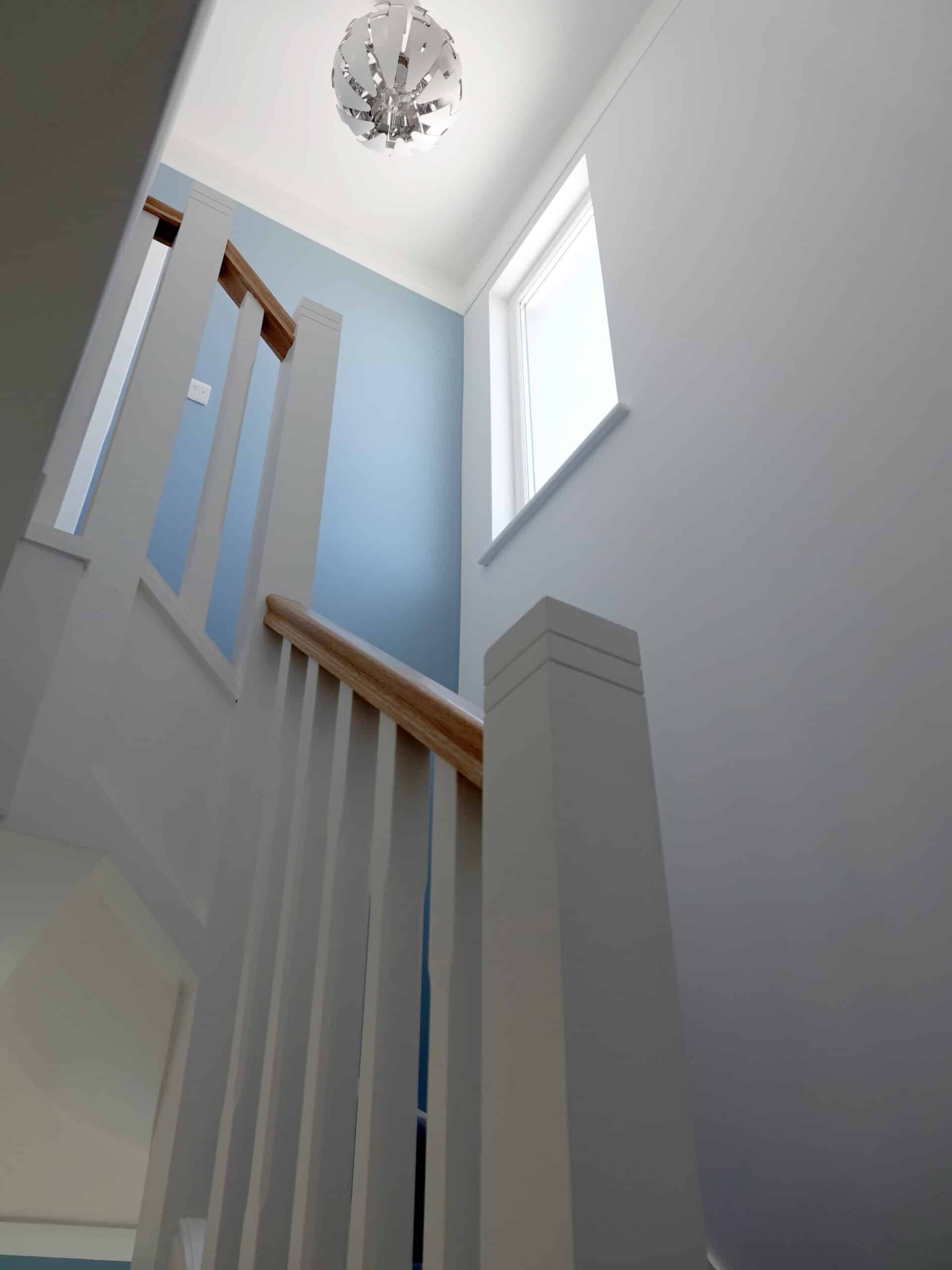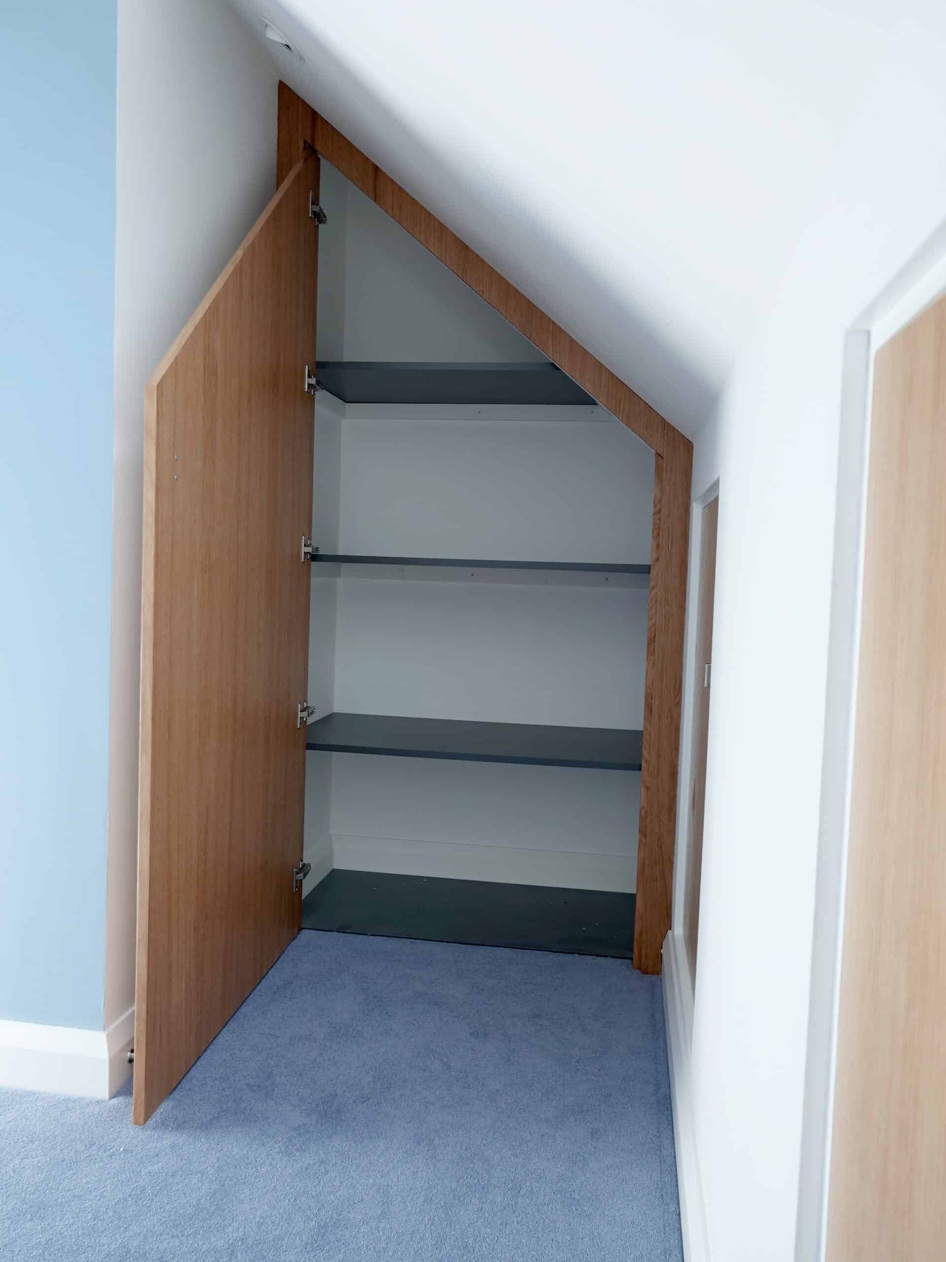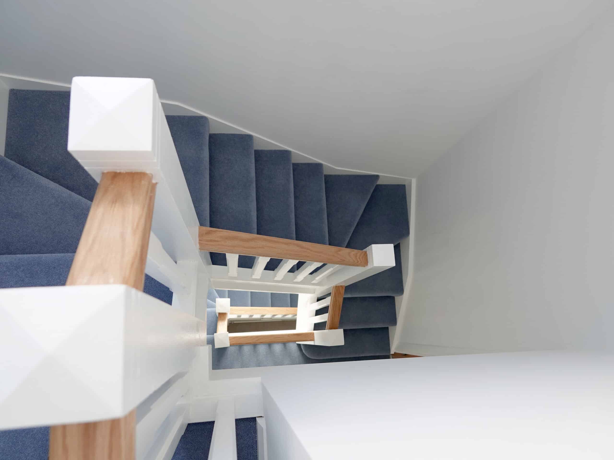 Loft conversion in Stoneleigh with an ensuite bathroom. With an almost nautical colour scheme and winding staircase this loft conversion is a great showcase.