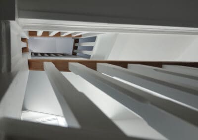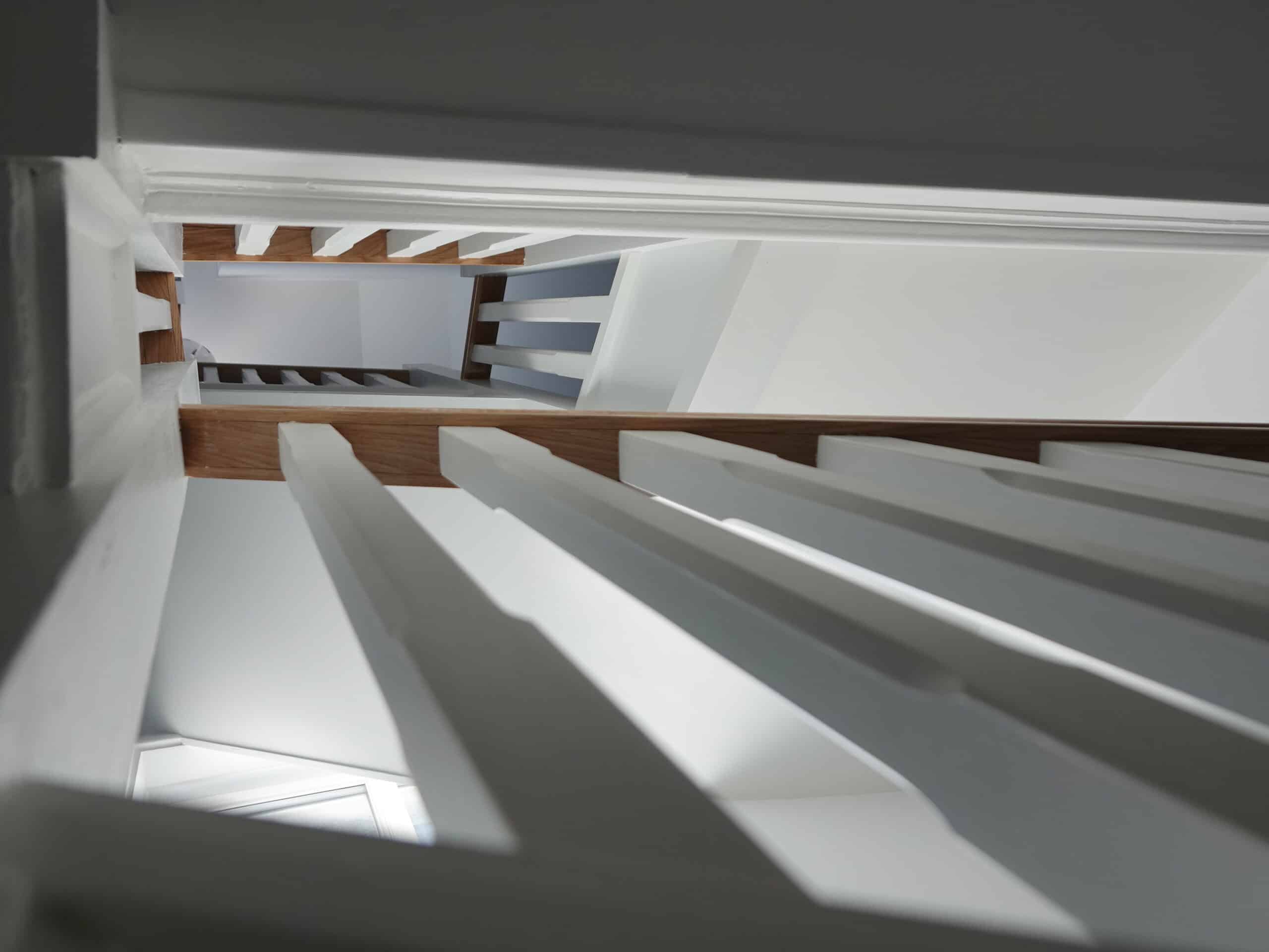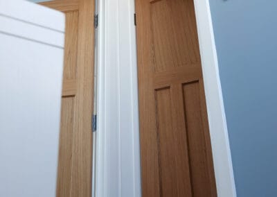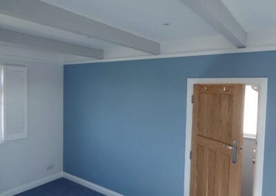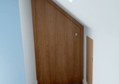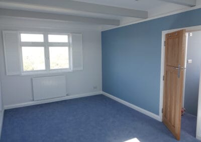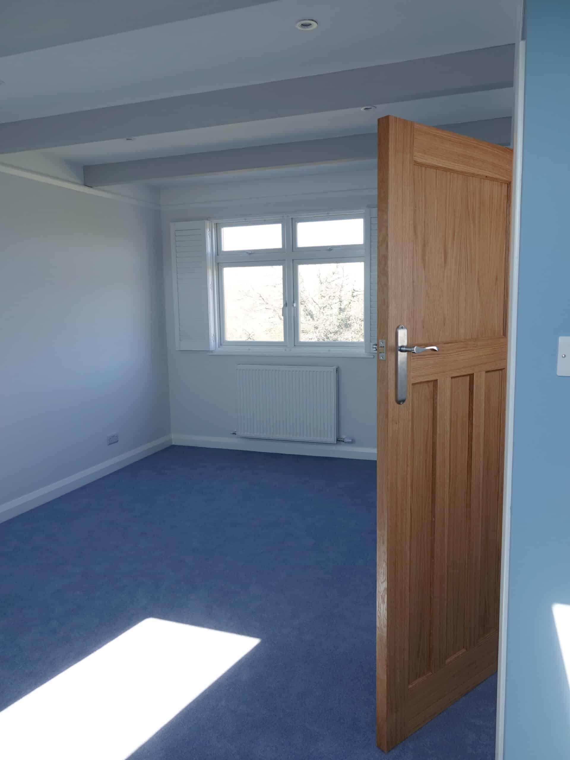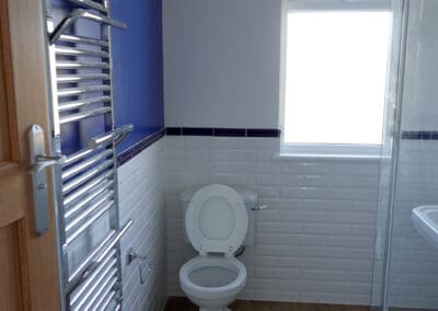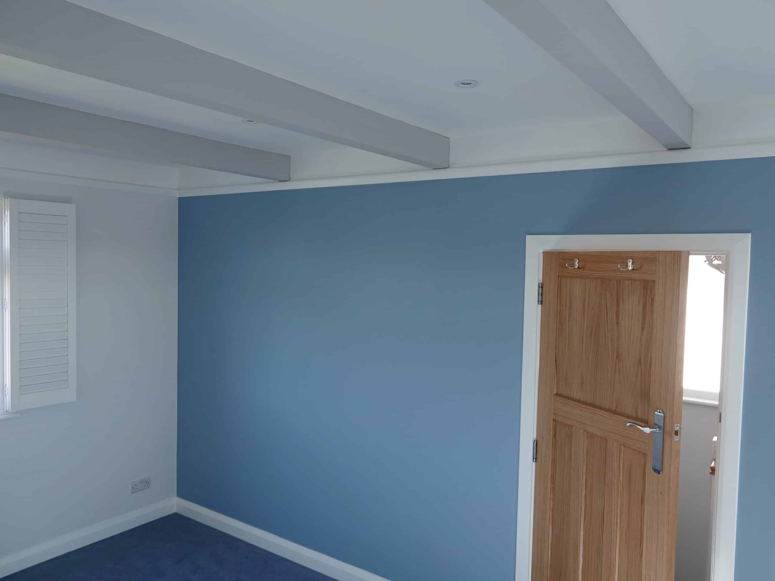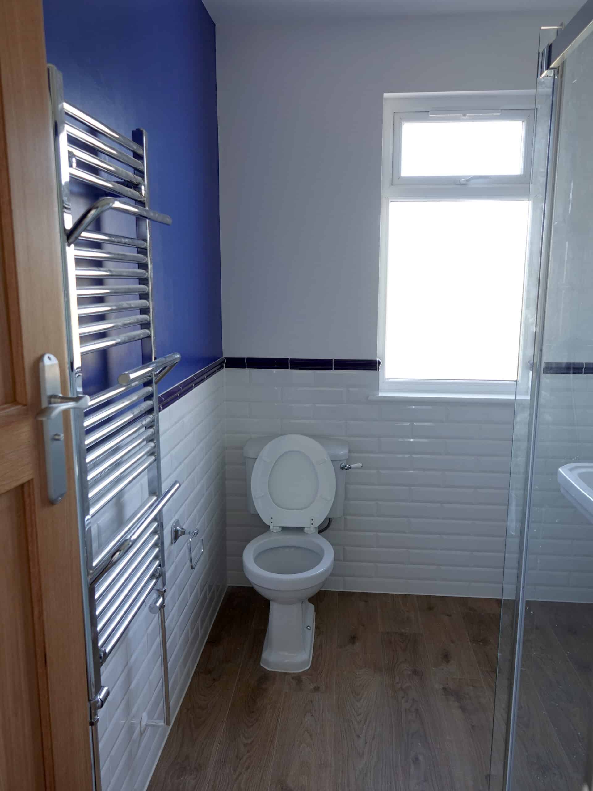 Loft conversion in Stoneleigh with an ensuite bathroom. With an almost nautical colour scheme and winding staircase this loft conversion is a great showcase.